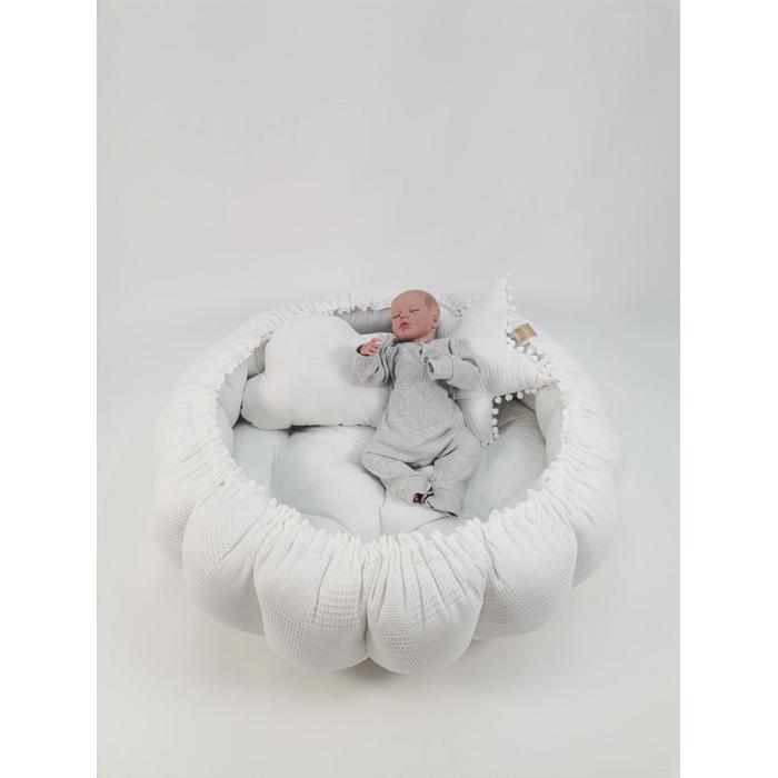 Yuvarlak babynest beyaz waffle pike - beyaz poplin
