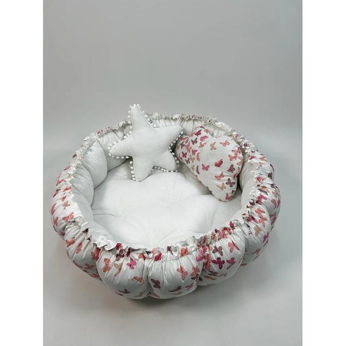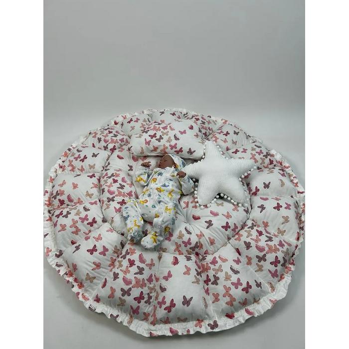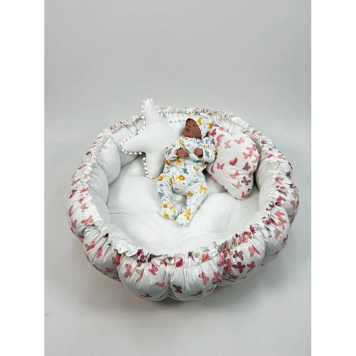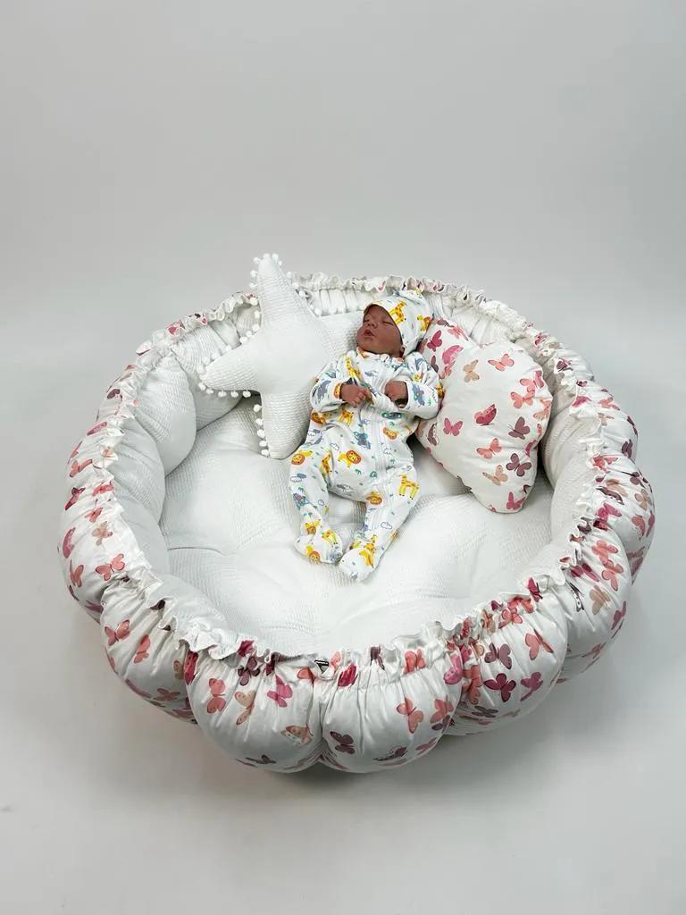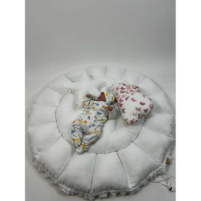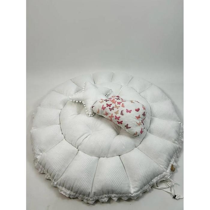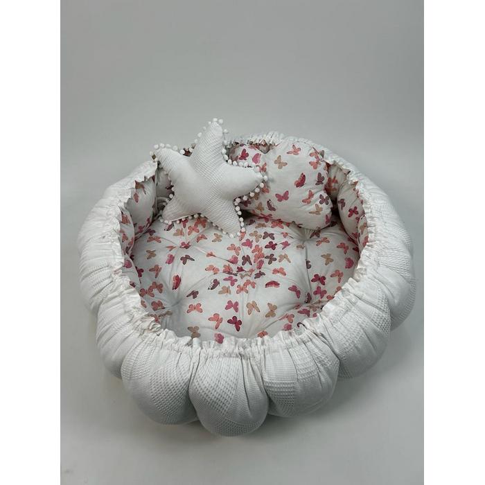 Yuvarlak babynest beyaz waffle pike - pudra kelebekli poplin