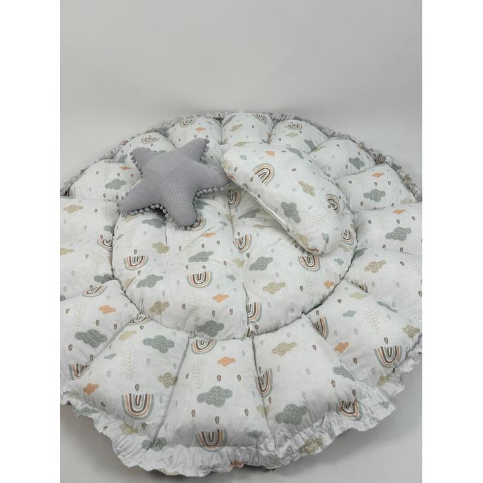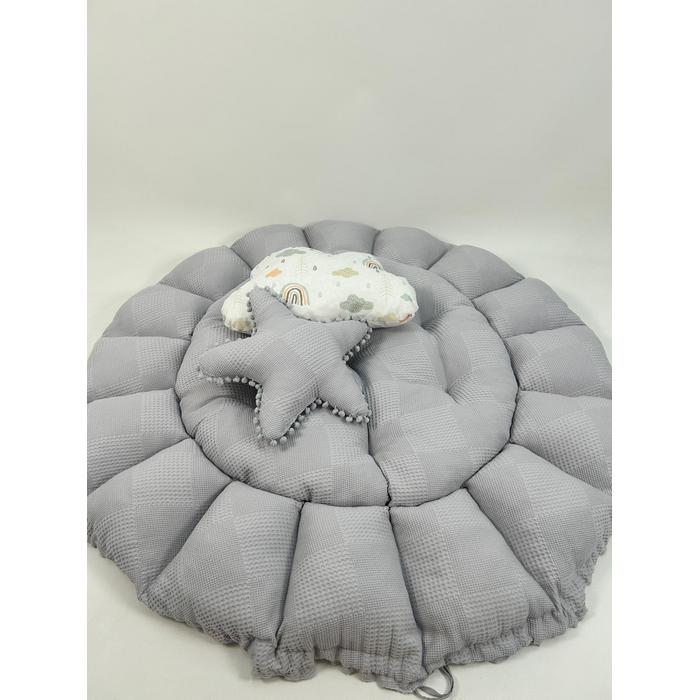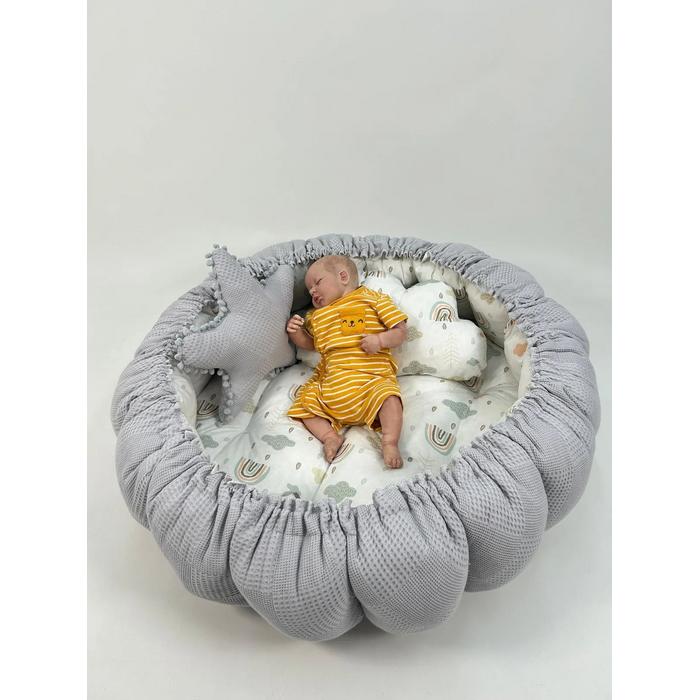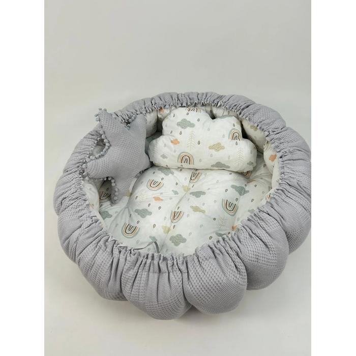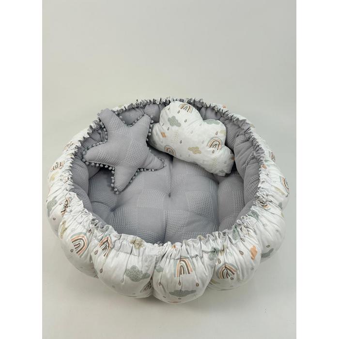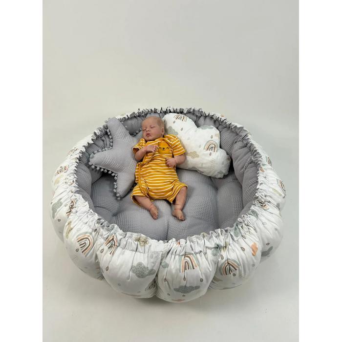 Yuvarlak babynest gri waffle pike - gökkuşaklı poplin