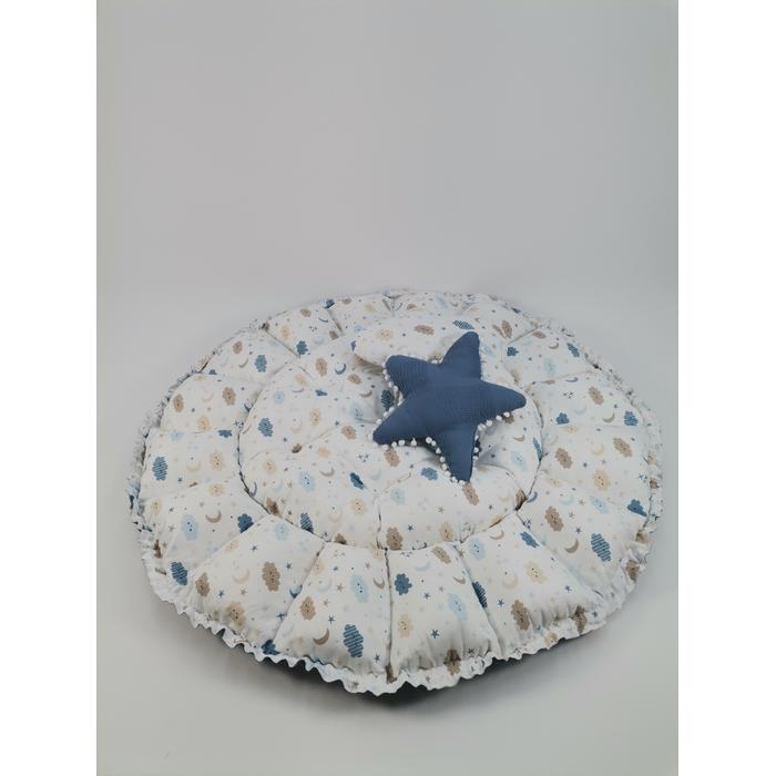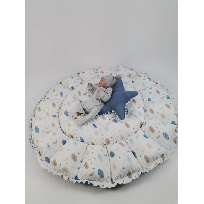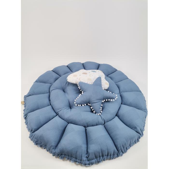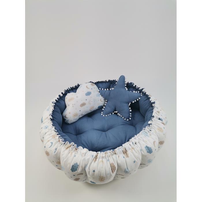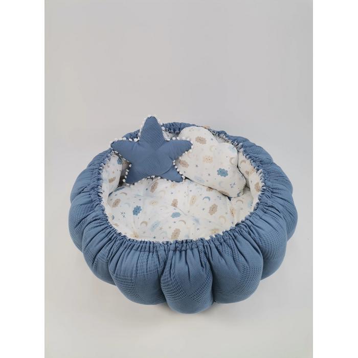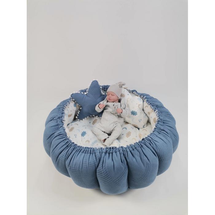 Yuvarlak babynest indigo mavi waffle pike - mavi aylı bulutlu müslin