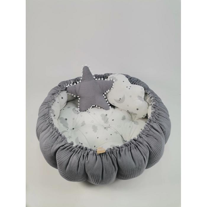 Yuvarlak babynest koyu gri waffle pike - gri aylı bulutlu poplin