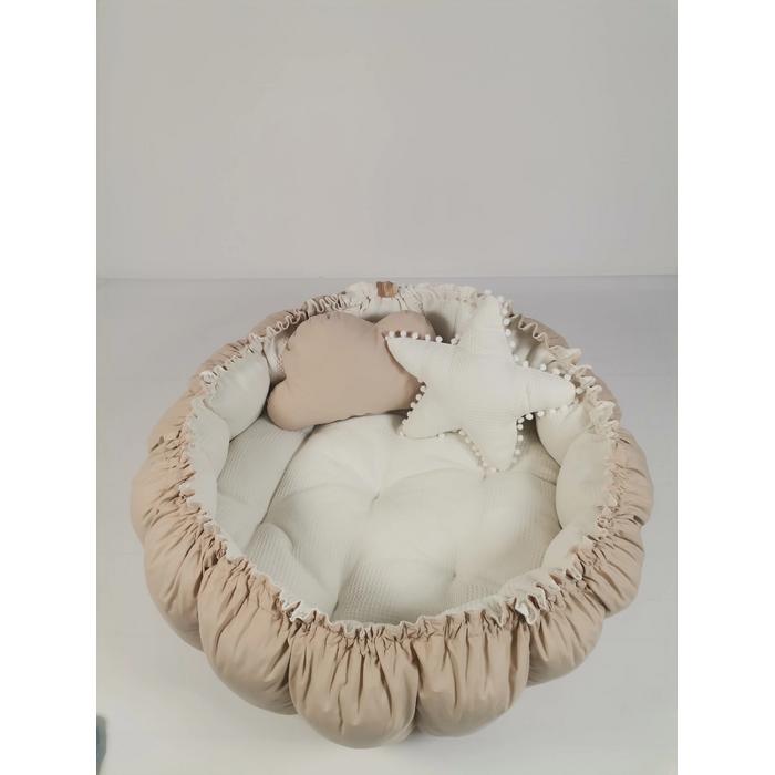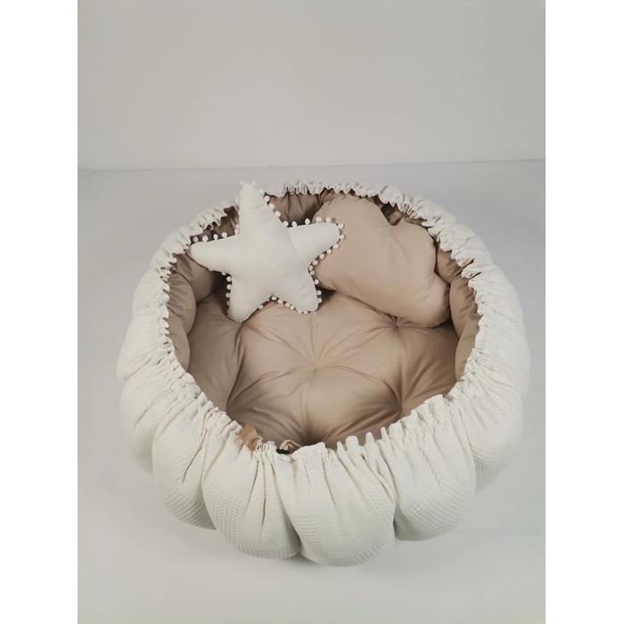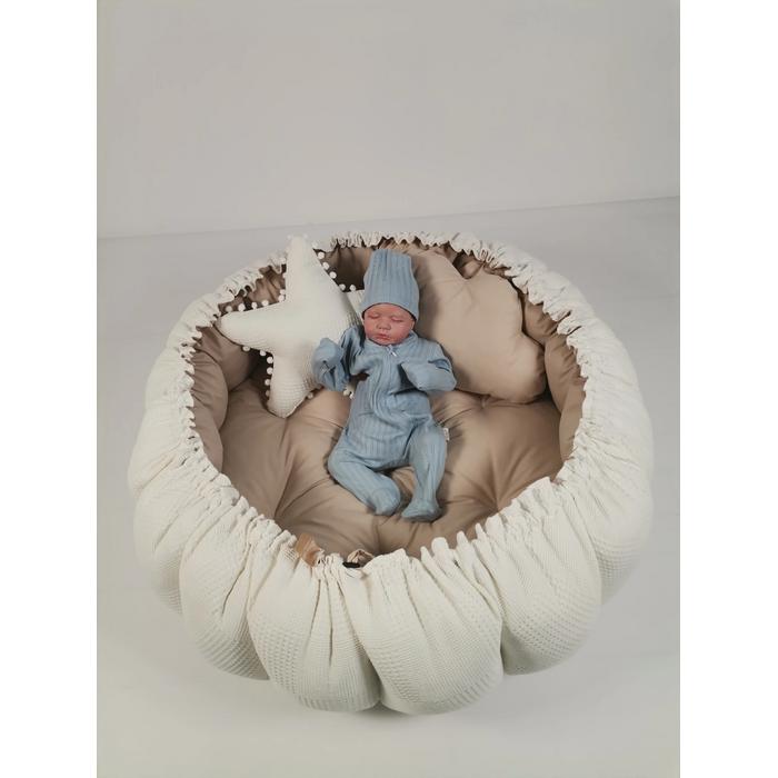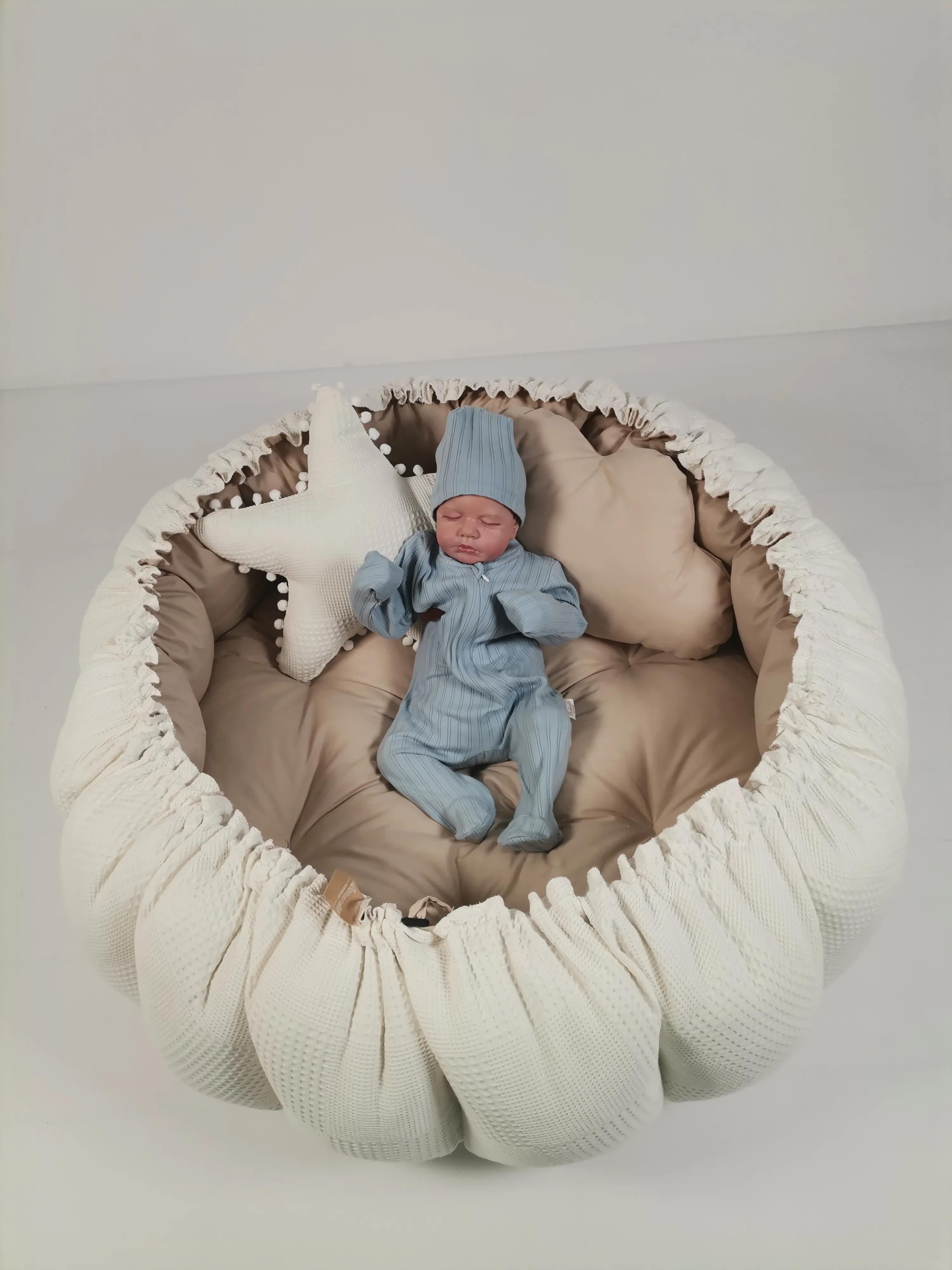 Krem waffle pike ve bej rengi poplin kumaştan üretilen Yuvarlak babynestimiz ;