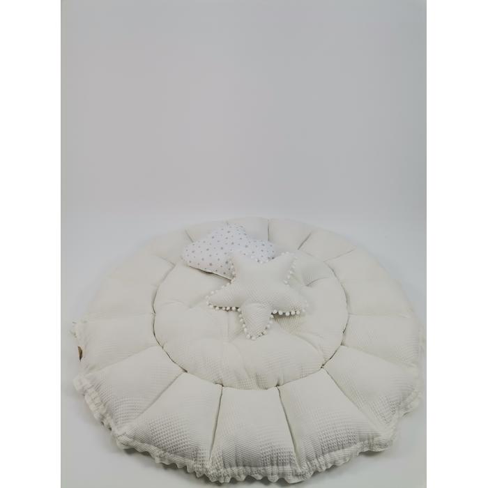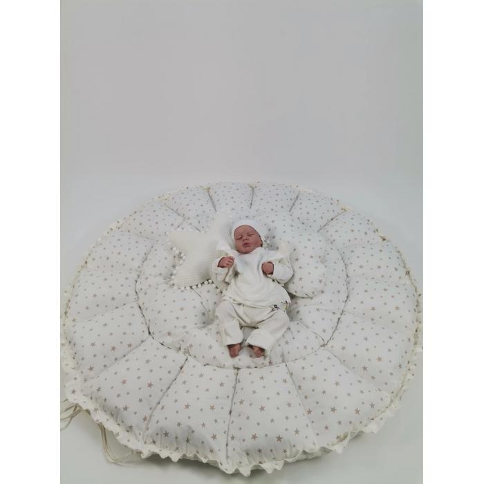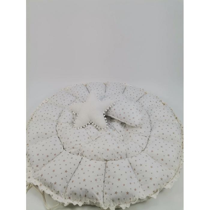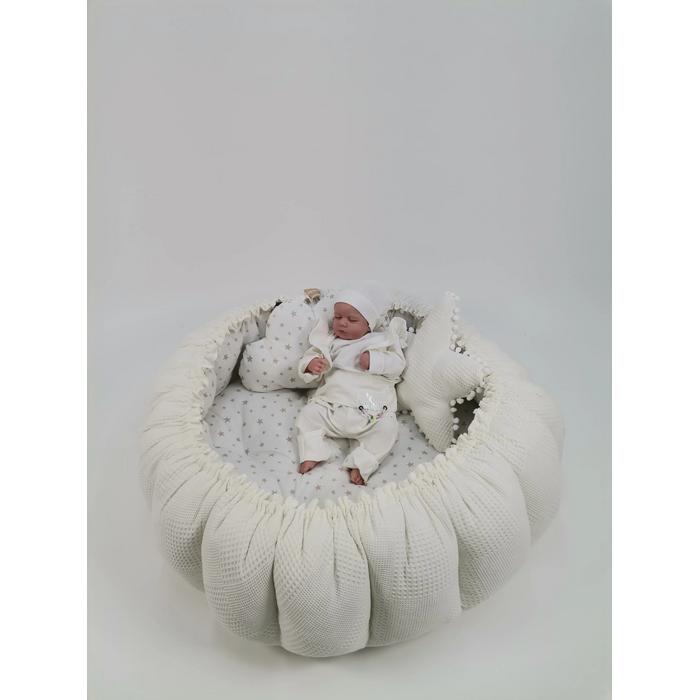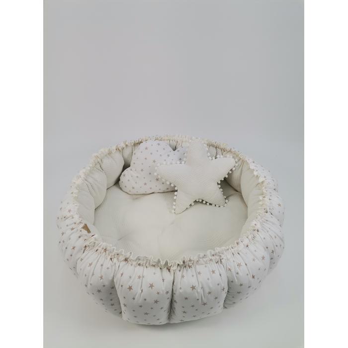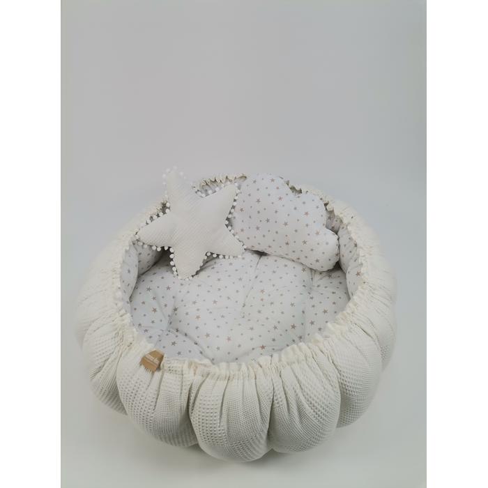 Yuvarlak babynest krem waffle pike - bej yıldızlı poplin