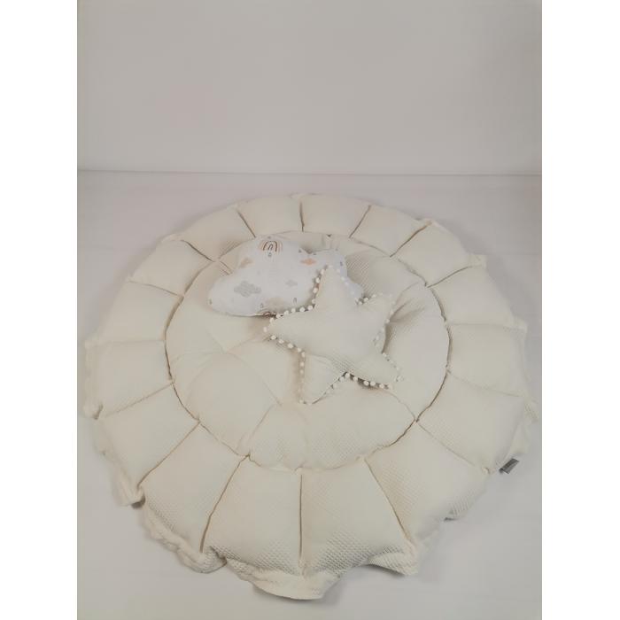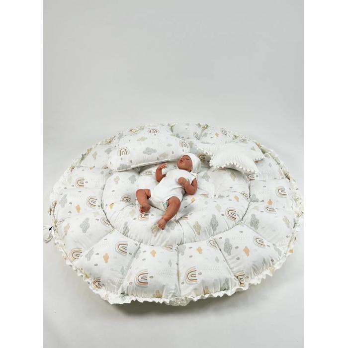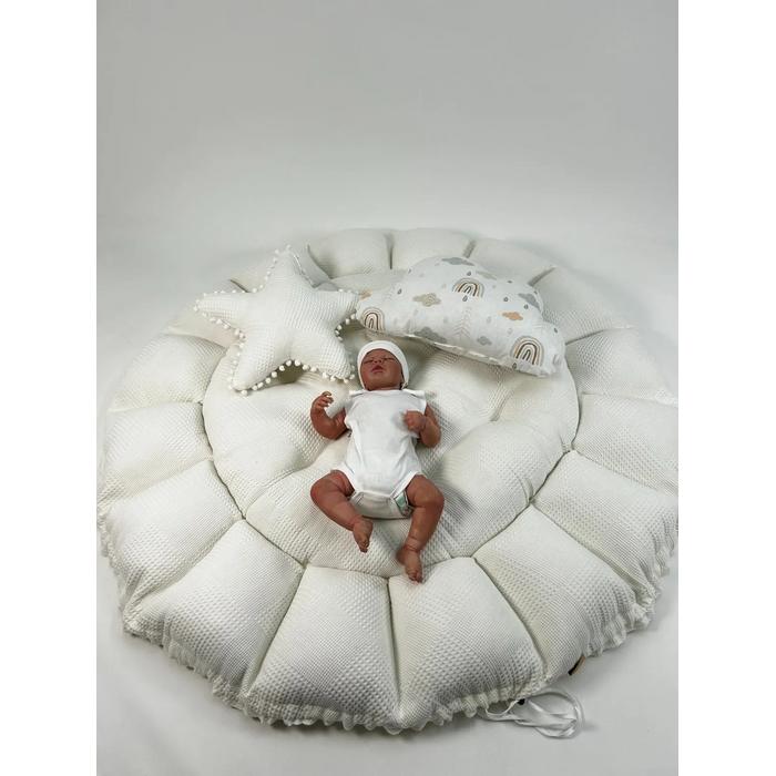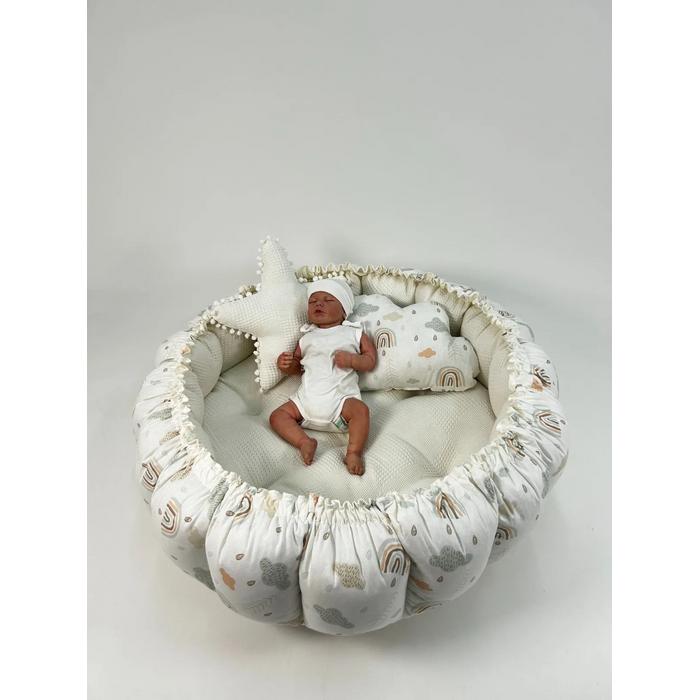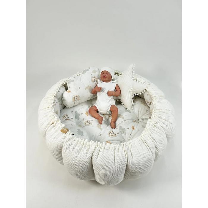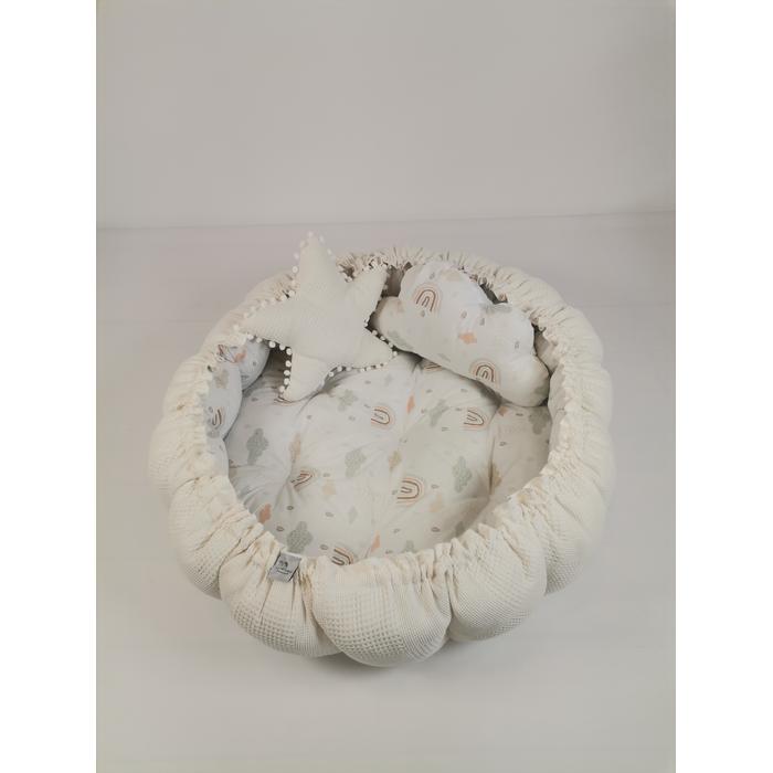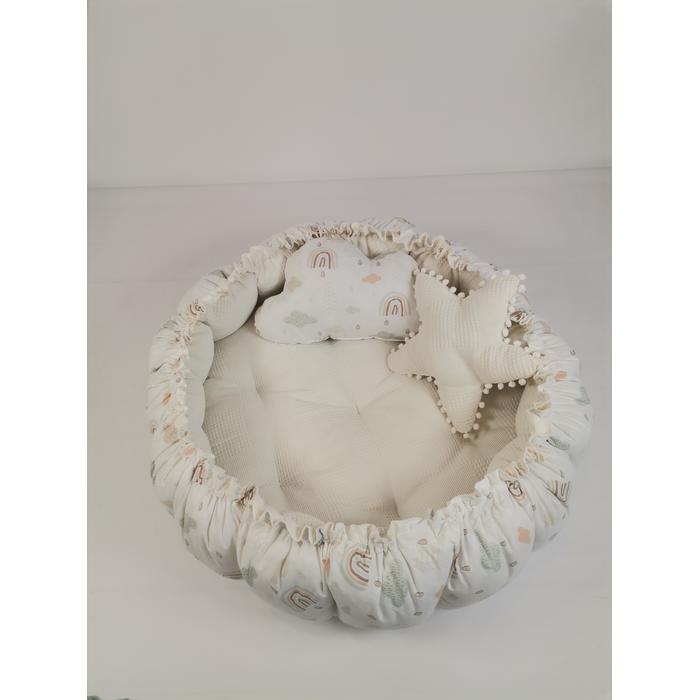Yuvarlak babynest krem waffle pike - gökkuşaklı poplin