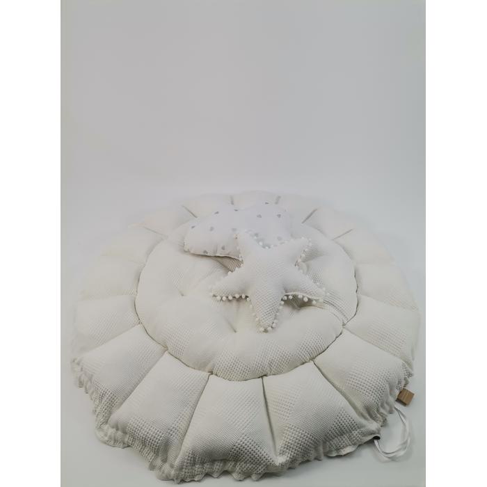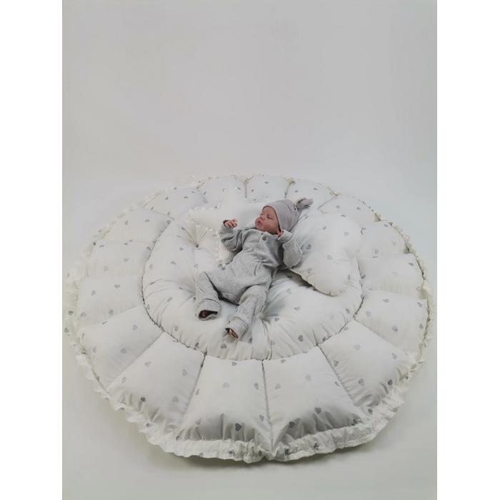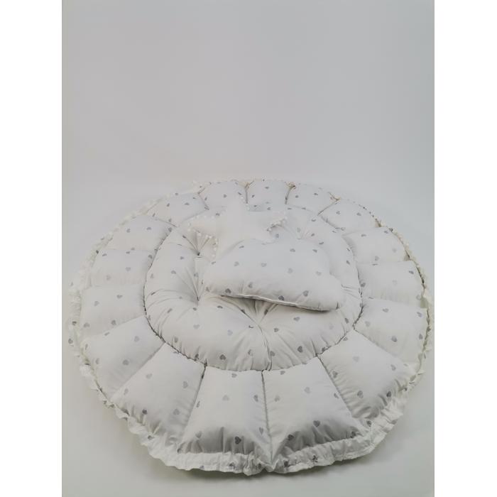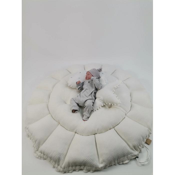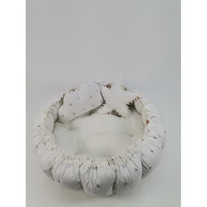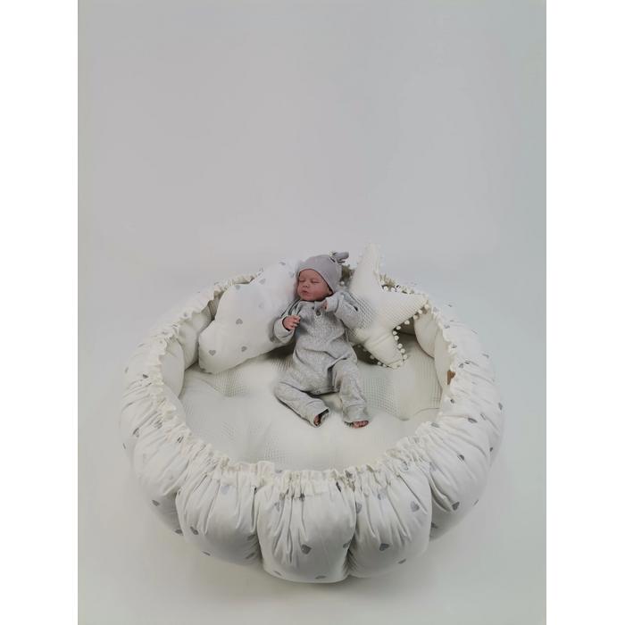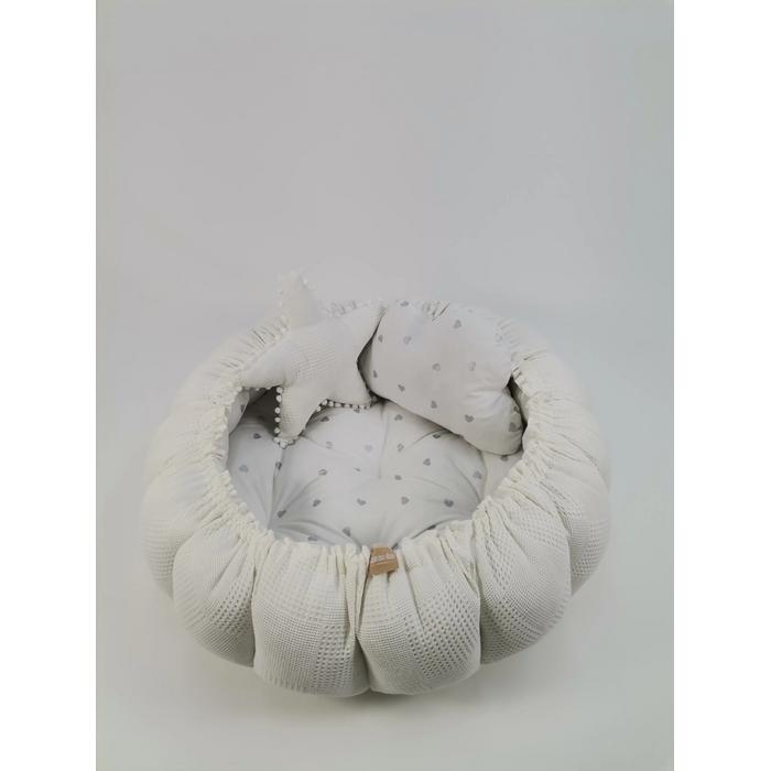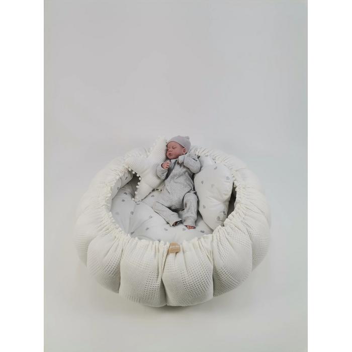 Yuvarlak babynest krem waffle pike - gümüş kalpli poplin