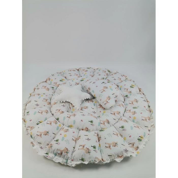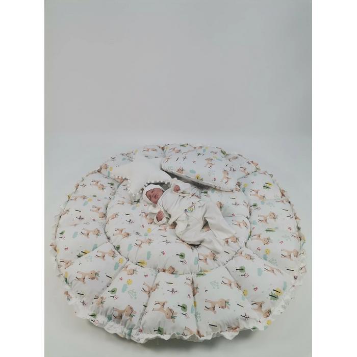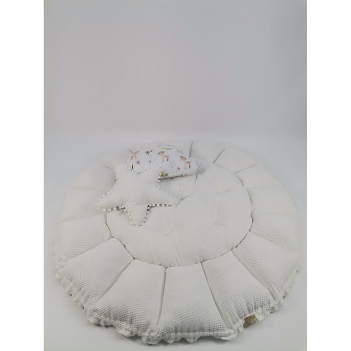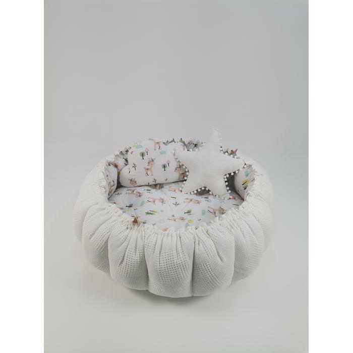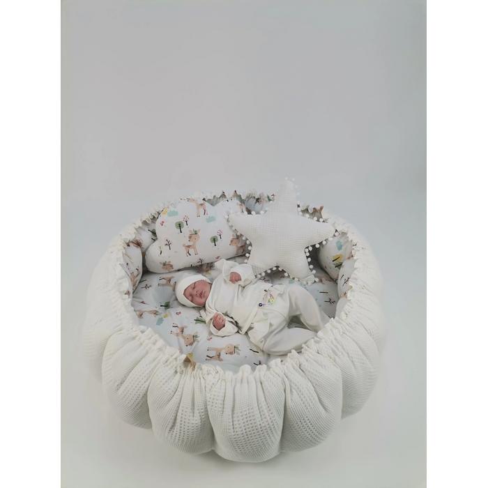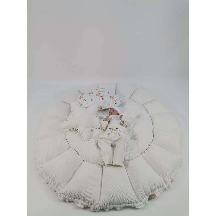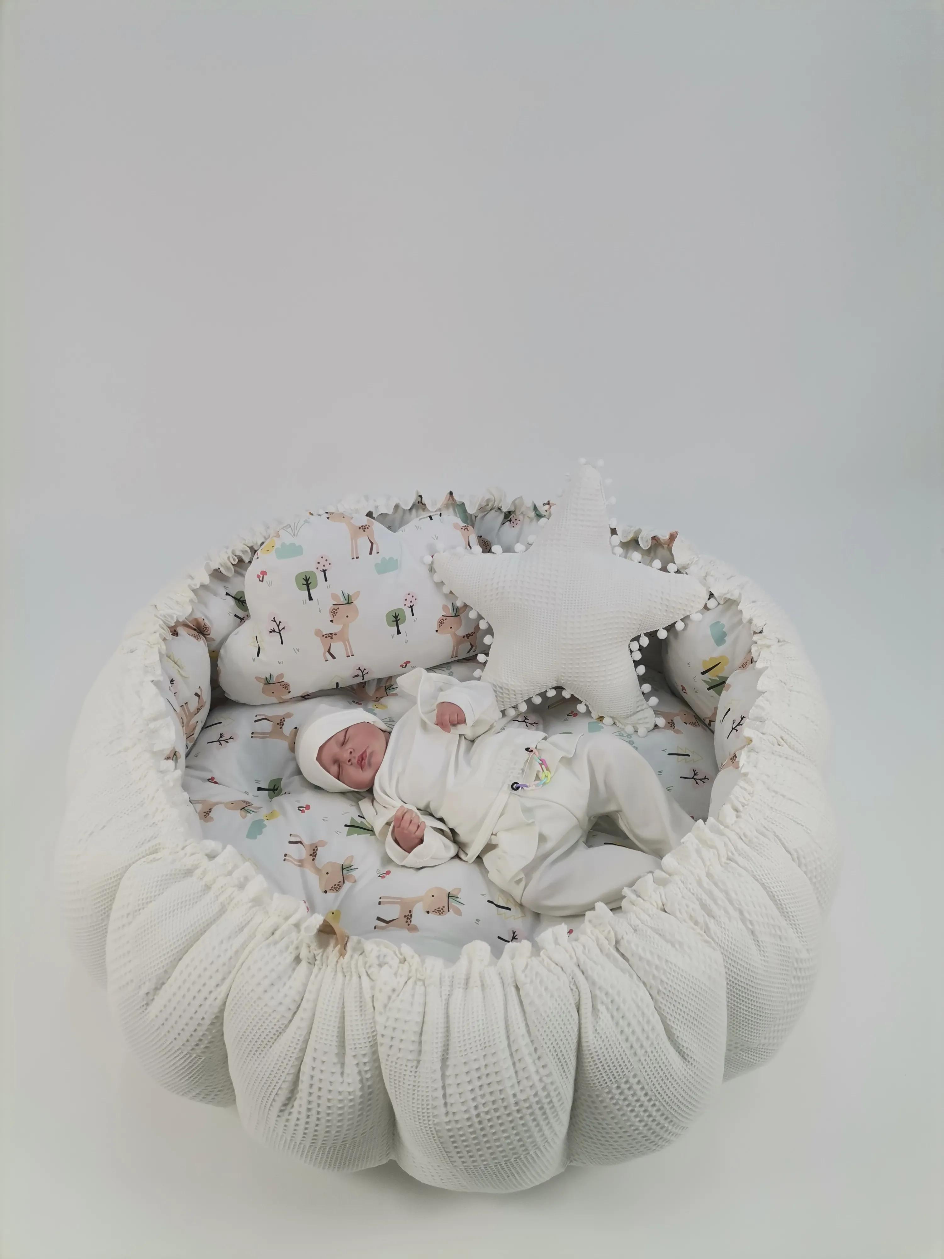 Krem waffle pike ve karacalı desenli poplin kumaştan üretilen Yuvarlak babynestimiz ;