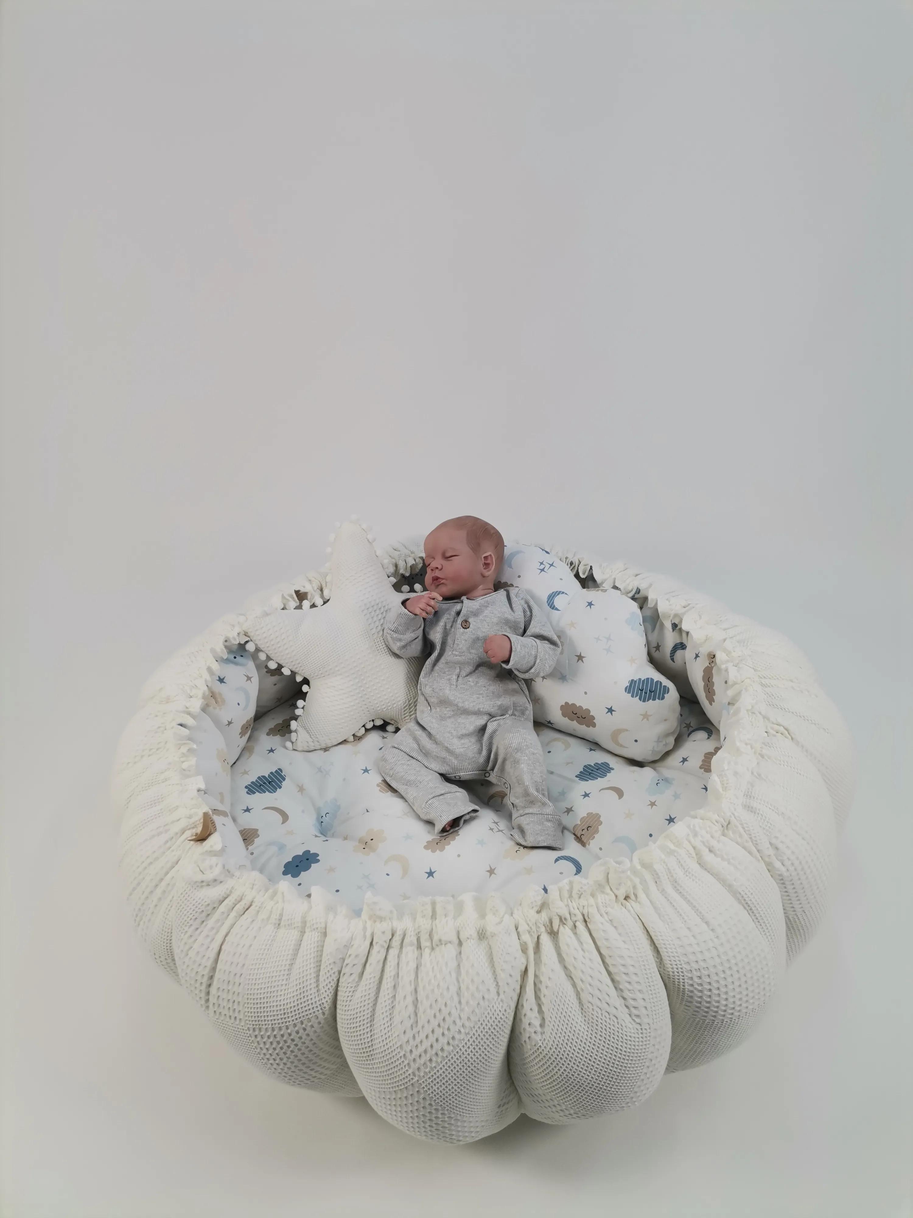 Waffle pike ve müslin kumaştan üretilen Yuvarlak babynestimiz ;