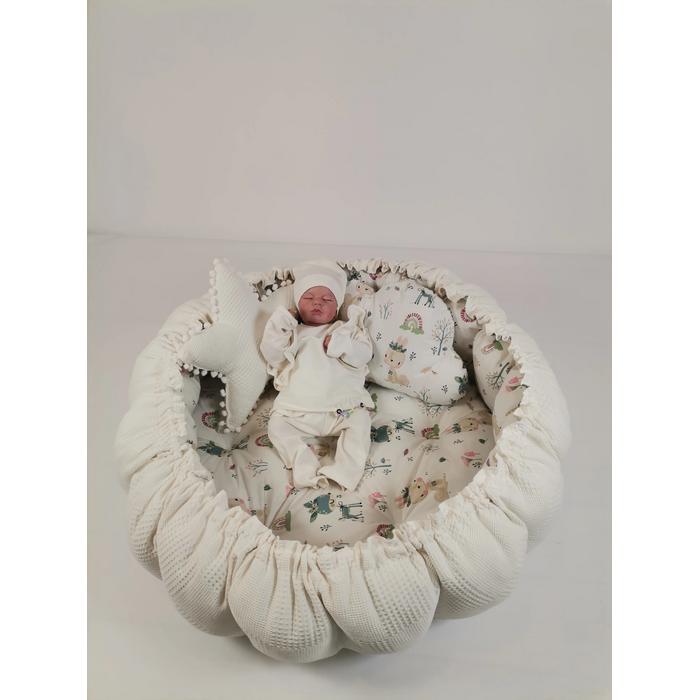 Yuvarlak babynest krem waffle pike - yeni ceylanlı poplin