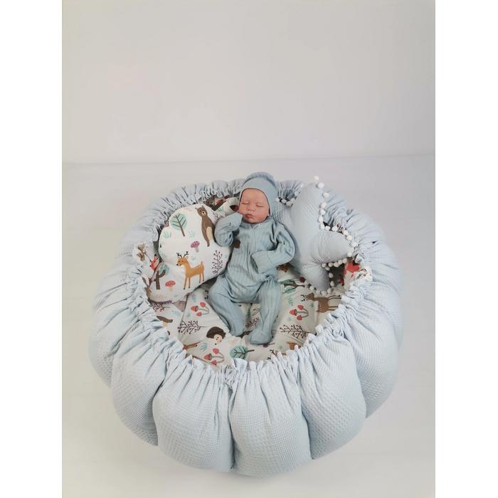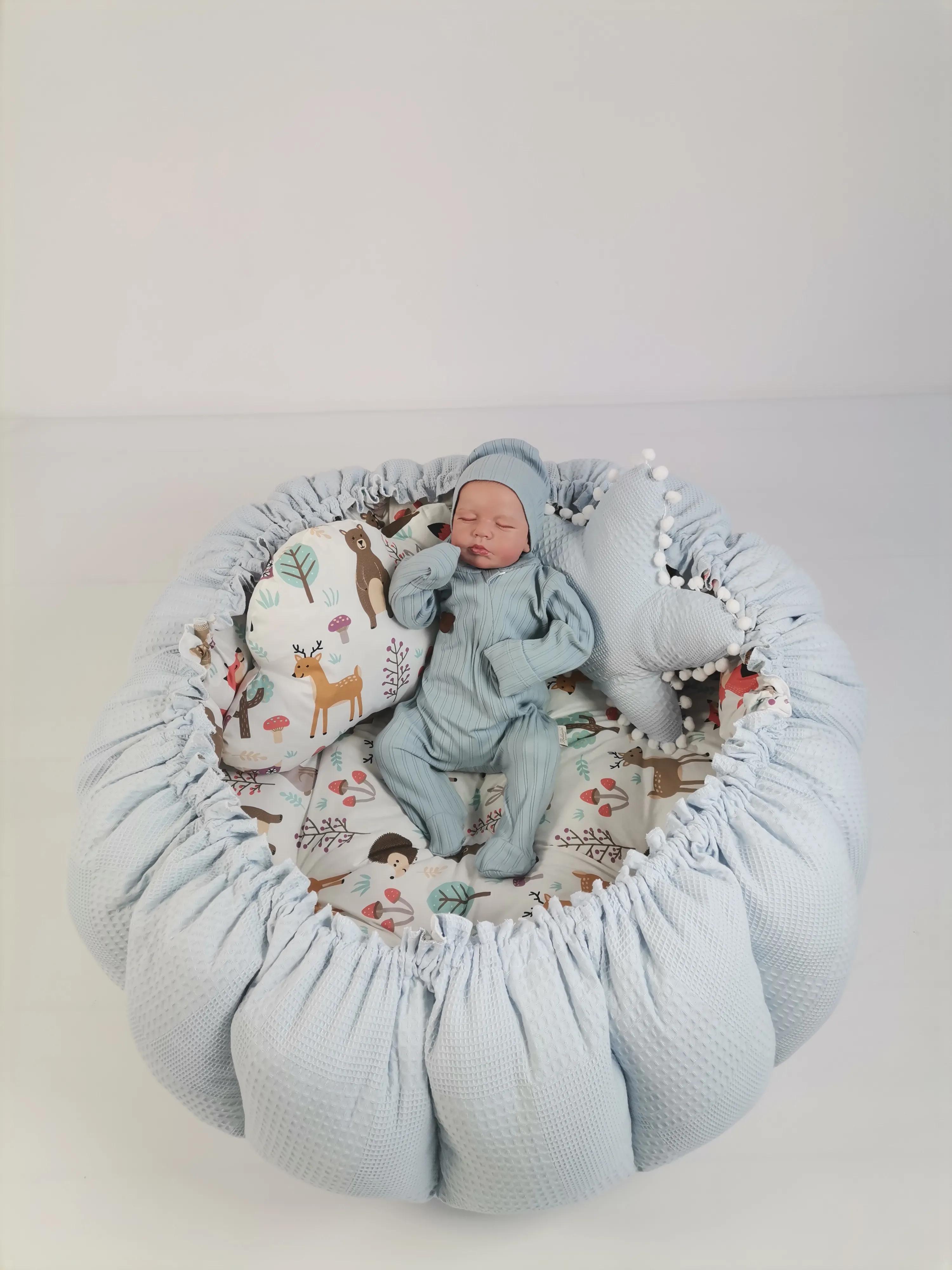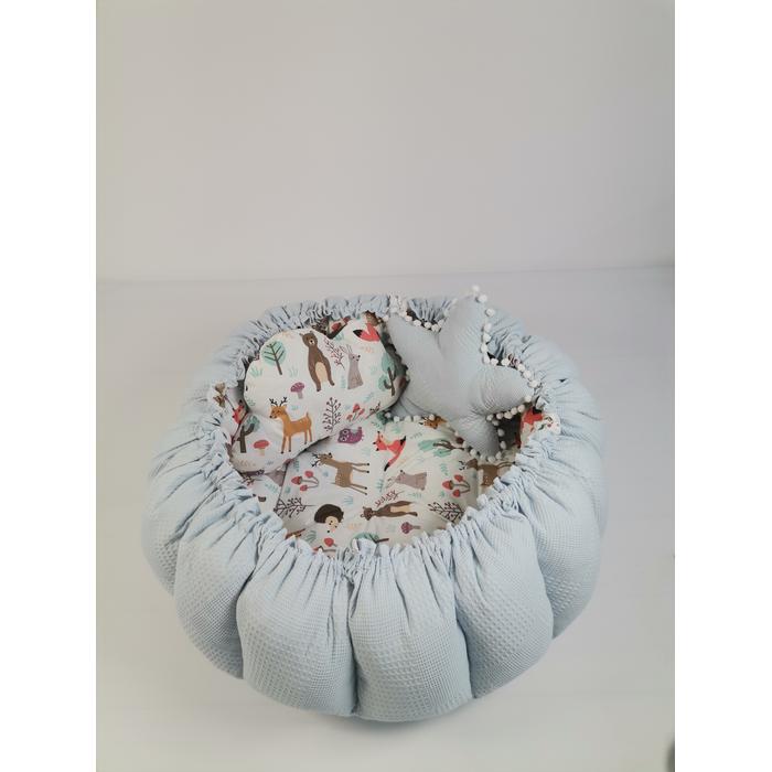 Mavi waffle pike - hayvan figürlü poplin kumaşlardan üretilen Yuvarlak babynestimiz ;