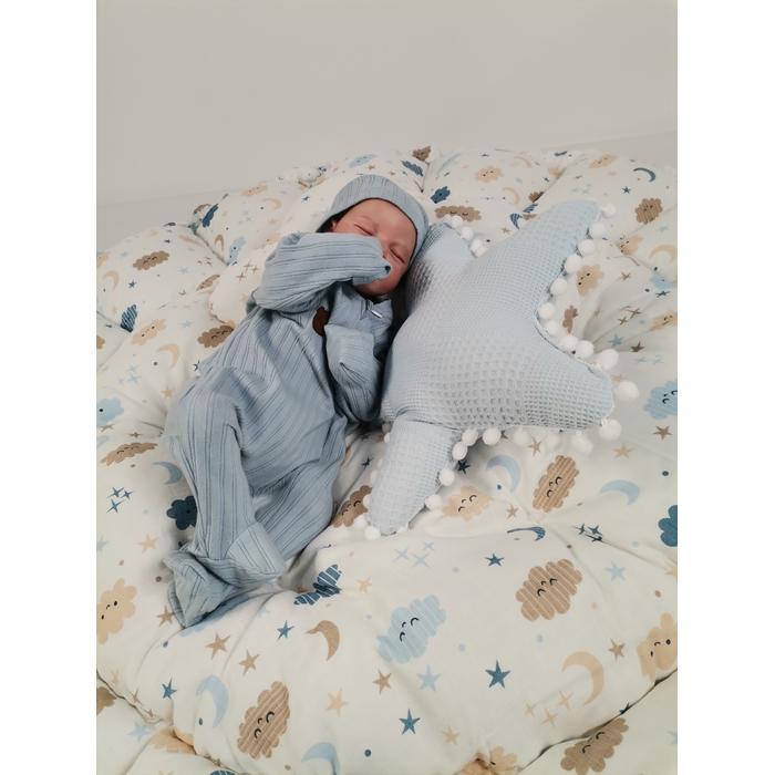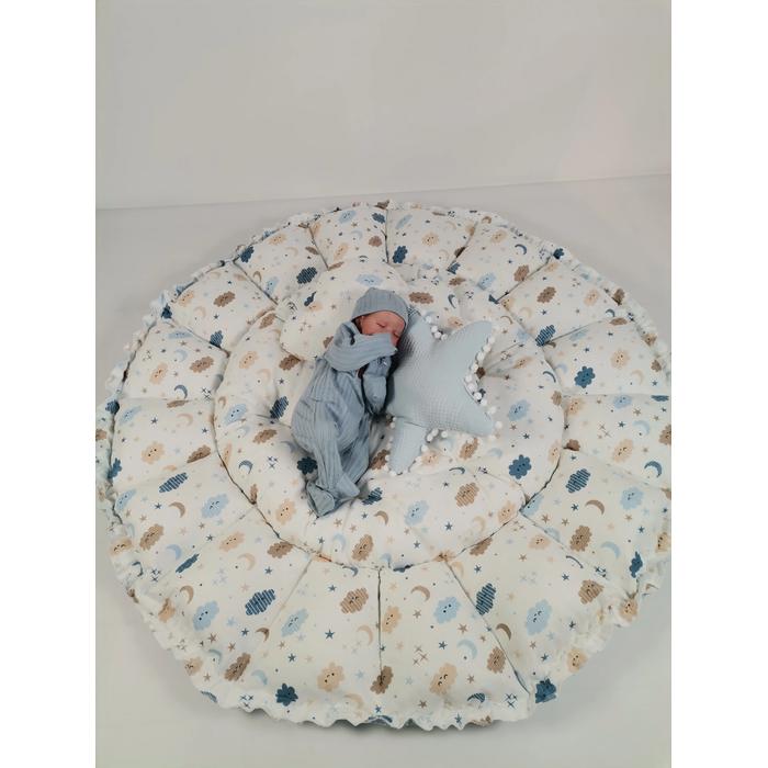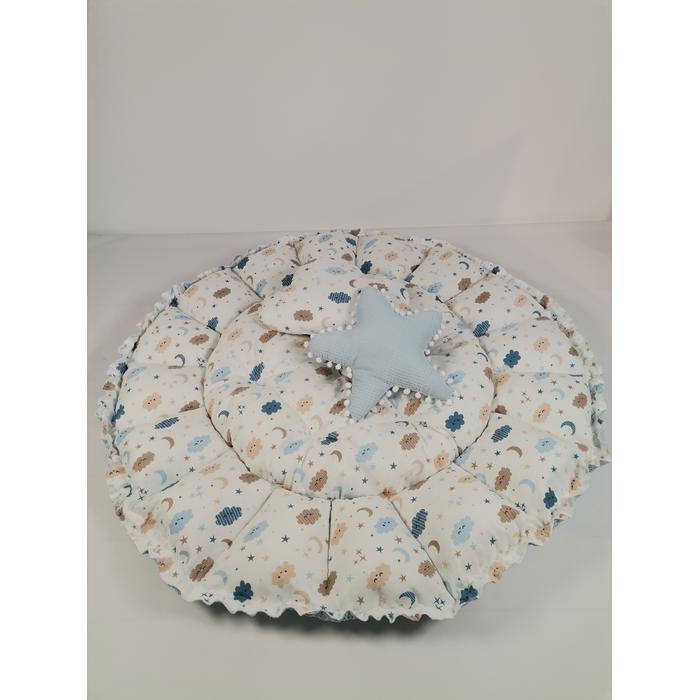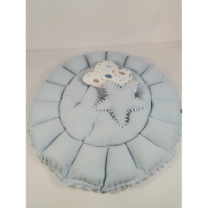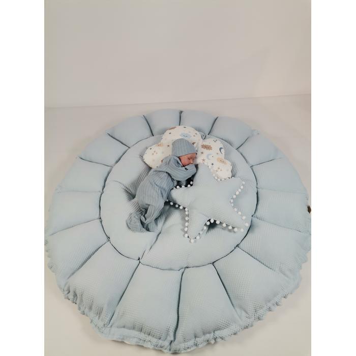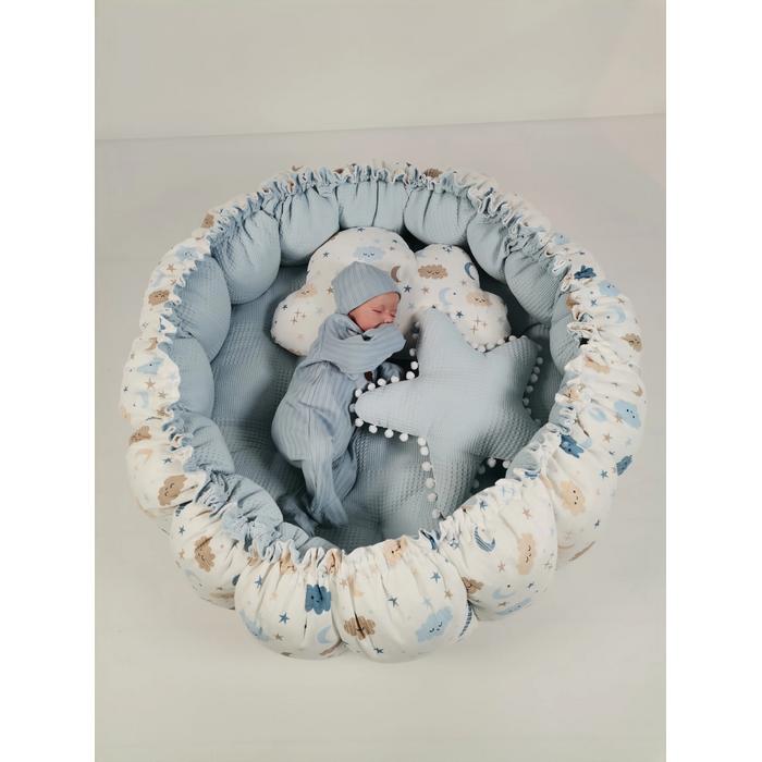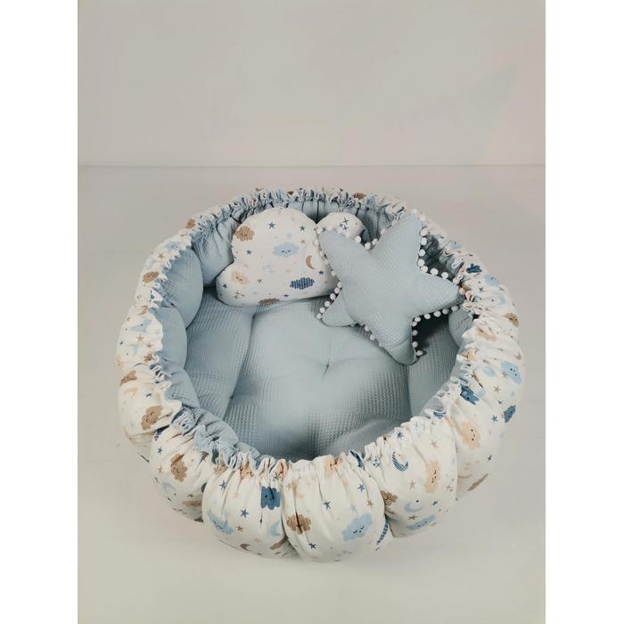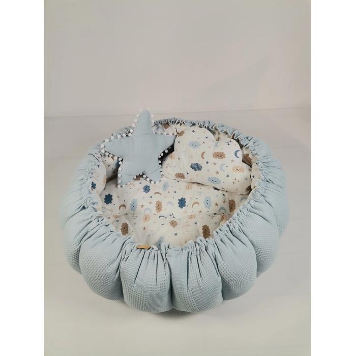 Yuvarlak babynest mavi waffle pike - mavi aylı bulutlu müslin