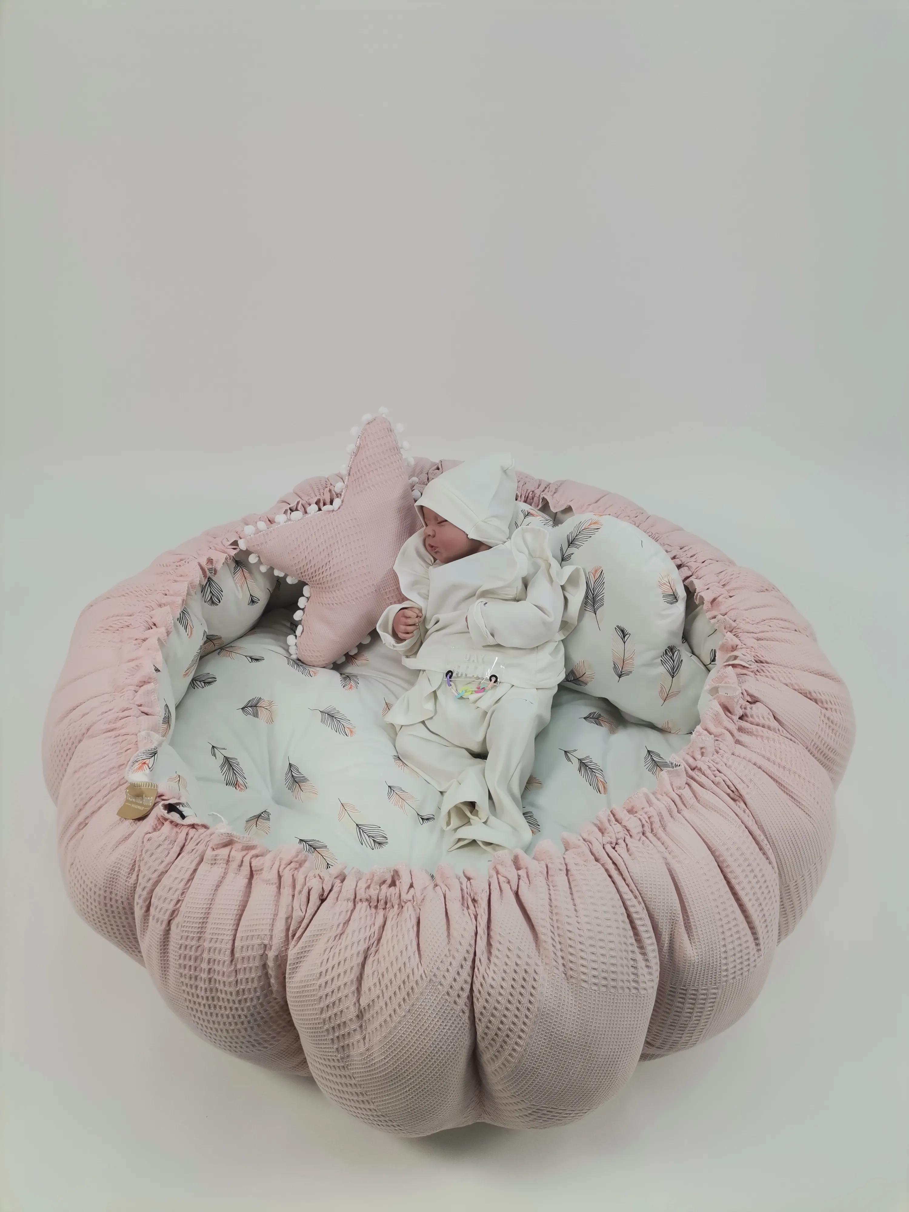 Waffle pike ve poplin kumaştan üretilen Yuvarlak babynestimiz ;