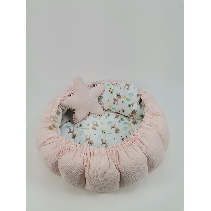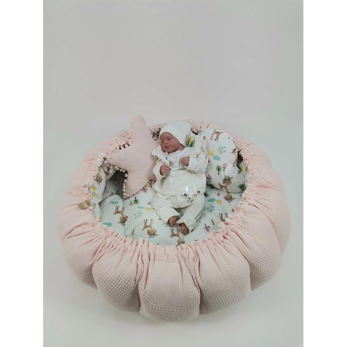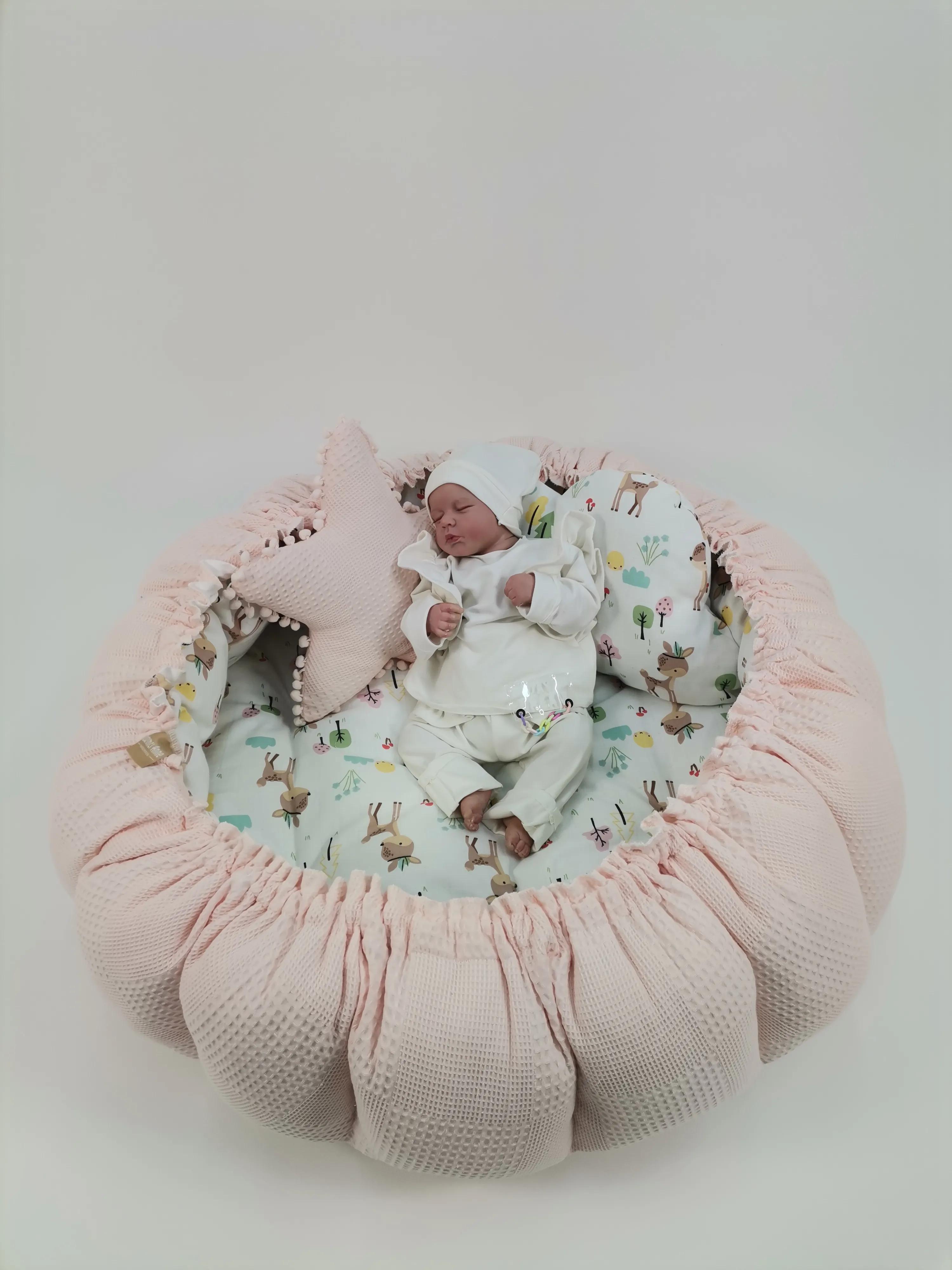 Waffle pike ve müslin kumaştan üretilen Yuvarlak babynestimiz ;
