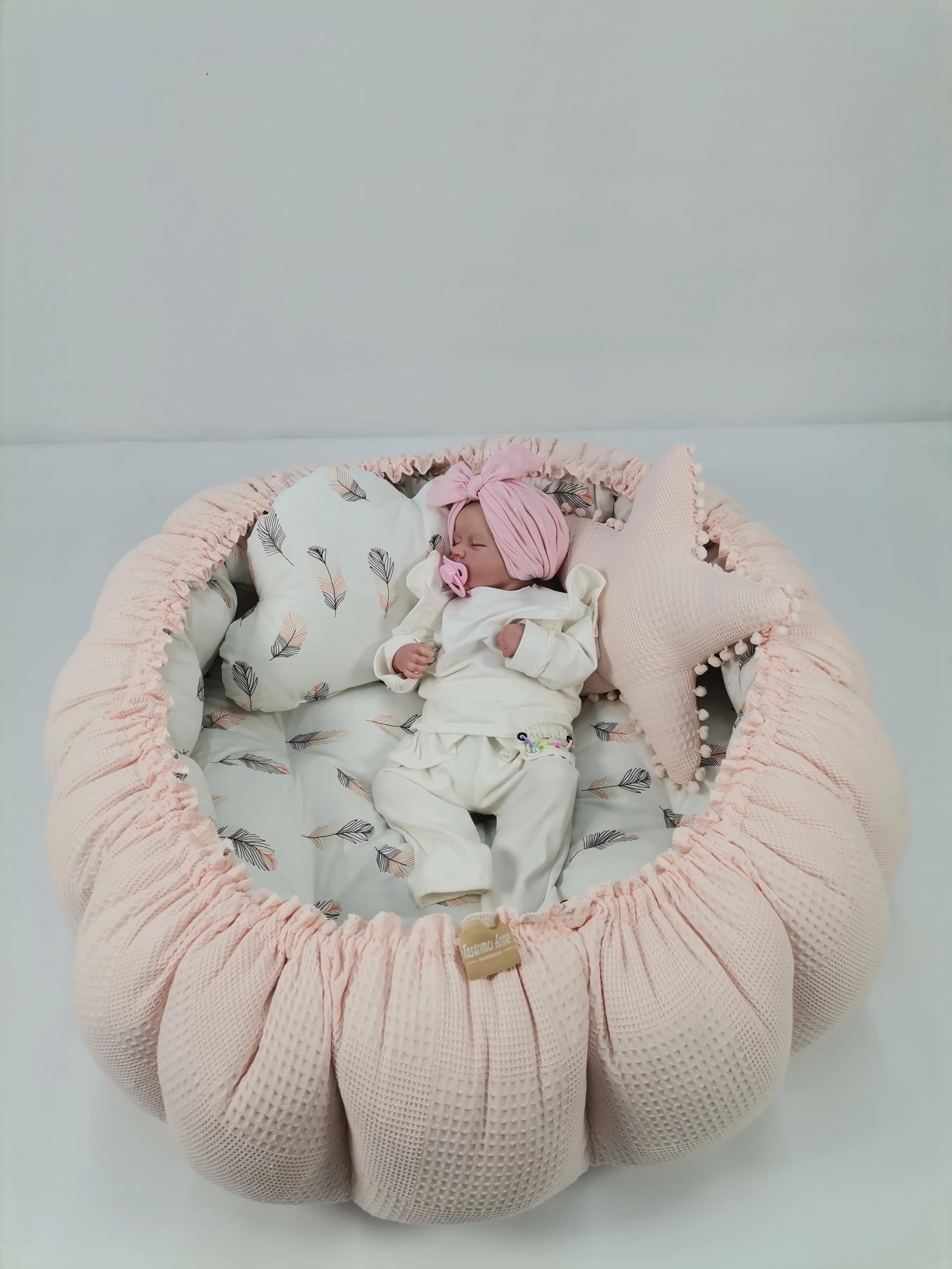 Waffle pike ve poplin kumaştan üretilen Yuvarlak babynestimiz ;