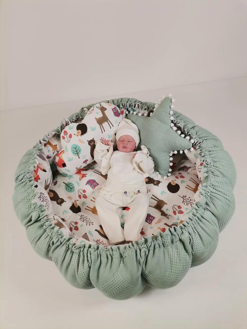 Waffle pike ve müslin kumaştan üretilen Yuvarlak babynestimiz ;