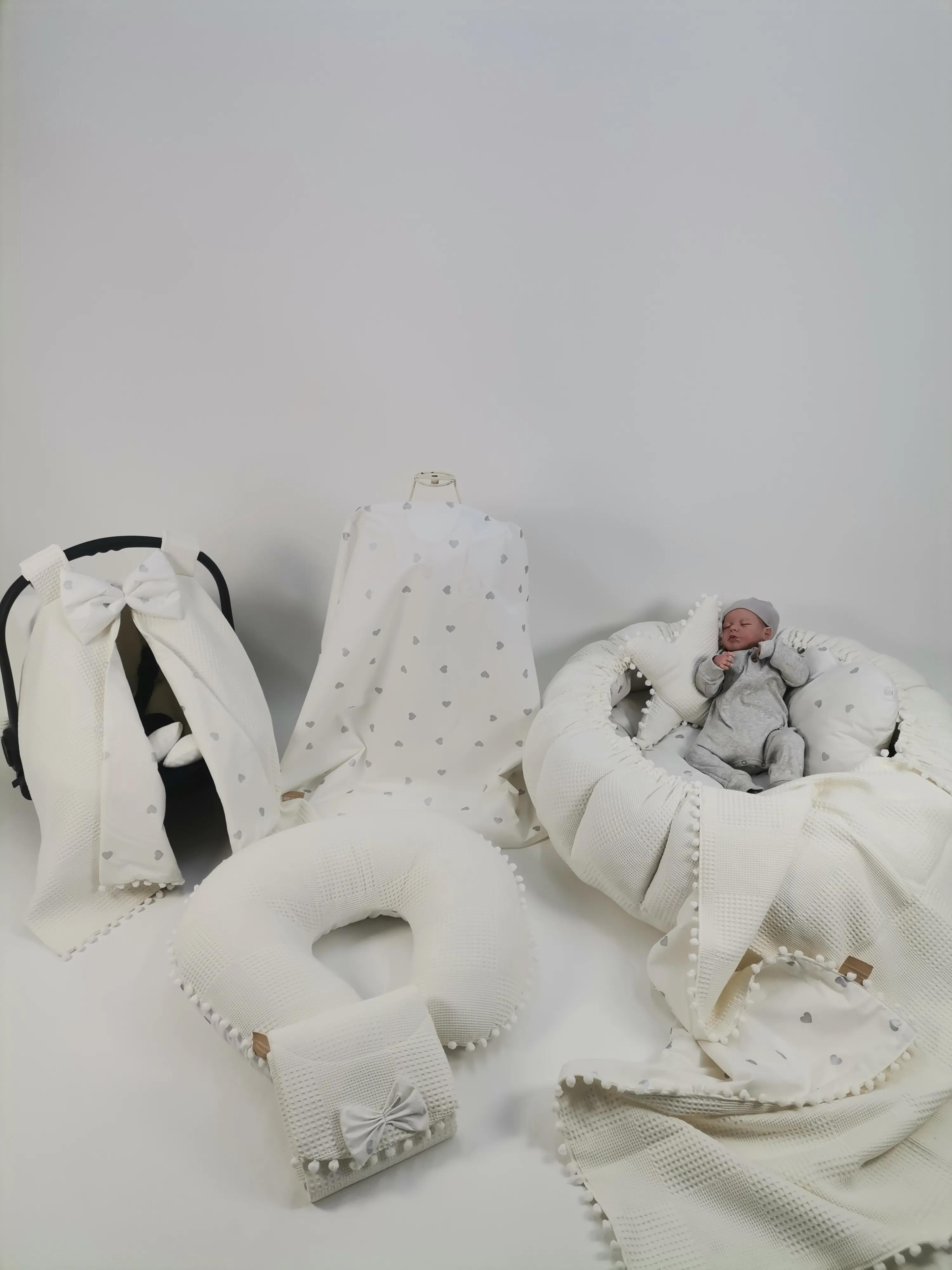 Waffle pike ve poplin kumaştan üretilen Yuvarlak babynestli 9 lu setimiz ;